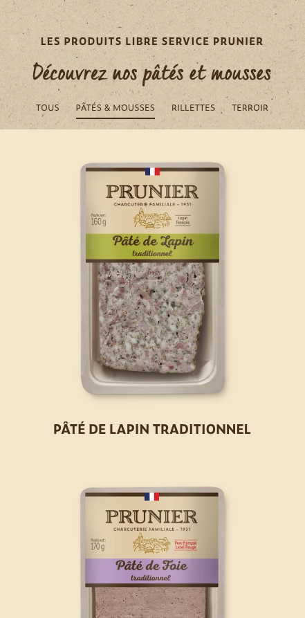 Charcuterie familiale depuis 1931, Prunier fabrique avec passion, des charcuteries de haute qualité pour égayer nos moments de partage et éveiller nos papilles au goût authentique de la charcuterie Française.
